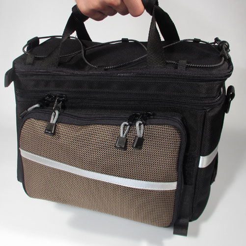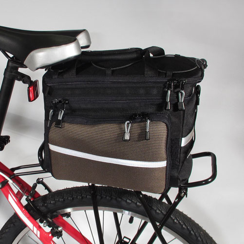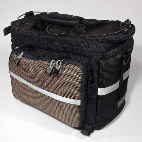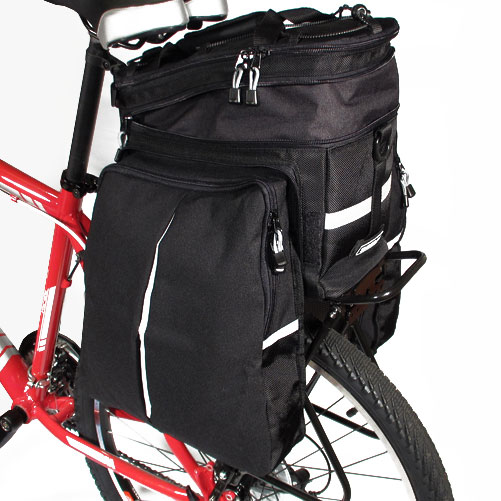 - Дополнительно: Светоотражающие ленты. Ручка и съемный наплечный ремень для транспортировки сумки. Боковые отделения имеют внутри складные карманы, которые при необходимости увеличивают объем сумки вдвое. Крепление для заднего фонаря. Чехол из непромокаемой легкой ткани.